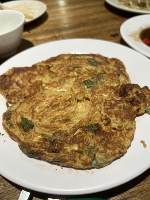 定番の肉湯包と、薄皮を入れたニラ玉子焼きを頂きました。