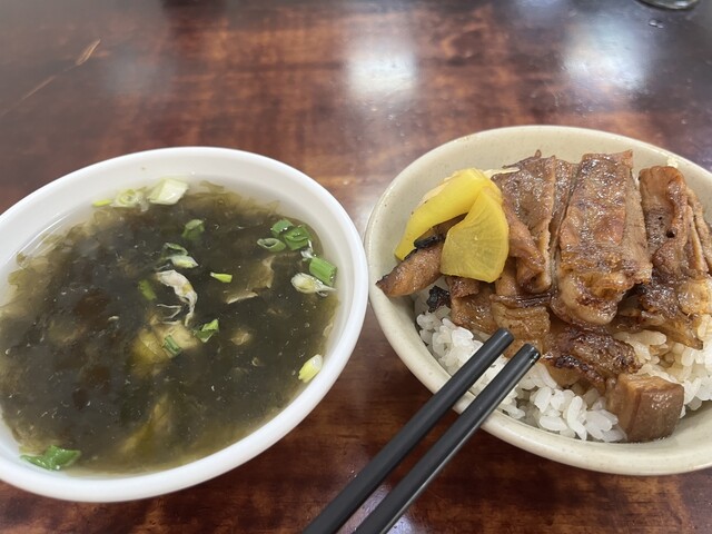 信義國小站から5分強程、高雄のローカル食。“焼肉飯”所謂、豚丼で、故郷の某食堂の焼肉定食を思い出す。