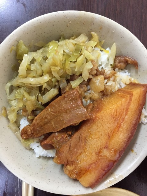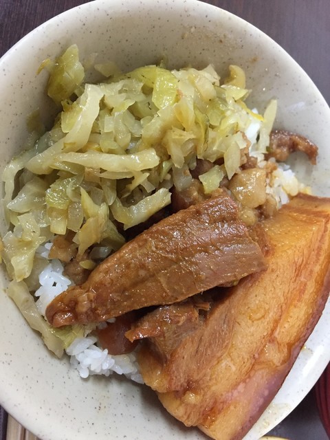 台北のそぼろ状の魯肉飯と違って、同じ名称でも南の方では「豚の角煮御飯」という地域差がまた面白いですね☆( *´艸`)