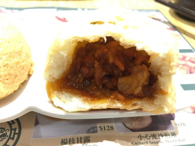 薄皮で甘いパイナップルパンの中に、豚チャーシュー入りバーベキューソースが