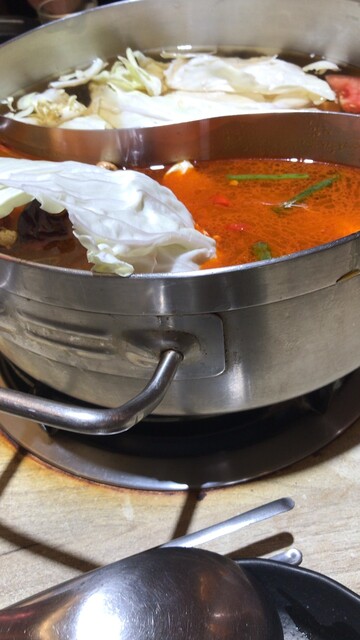 火鍋は辛いものとオーソドックスなものの2種類から選べ、そのまま2種で勝負いたします。