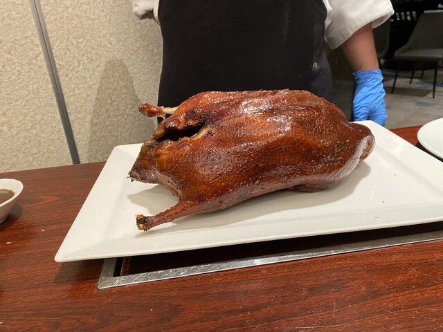 北京ダックはその場で切って巻いてくれます