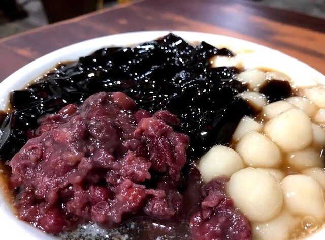個人的、豆花の三種の神器。仄かな甘さの小豆と豆花の味わい。甘いシロップに仙草ゼ...