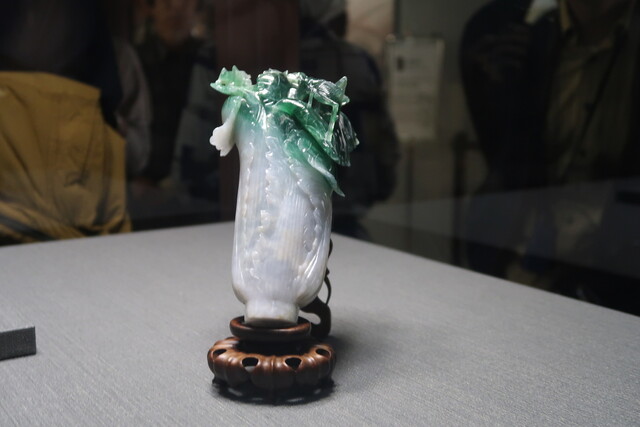最も有名な展示物と言えば、2色に分離した翡翠を清廉潔白を表す白菜に模した「翠玉白菜」と、3層になっている石に加工を施した「肉形石」。肉は出張中で見れなく残念。