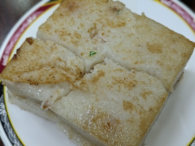 これは大根餅ですな。かなり滑らかに仕上げており、知らない人が食べればコレが大根だとは気づかないことでしょう。腹に溜まる逸品です。