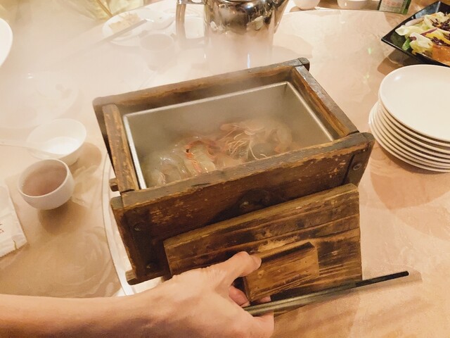 前菜・サラダの他、名物らしいエビを紹興酒で蒸したもの、とろとろに煮込まれた豚の角煮(薄切り)、麻婆豆腐、ホタルイカのような揚物と唐辛子を炒めたもの、キャベツ炒め、魚のつみれのスープ、...