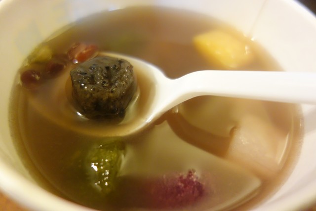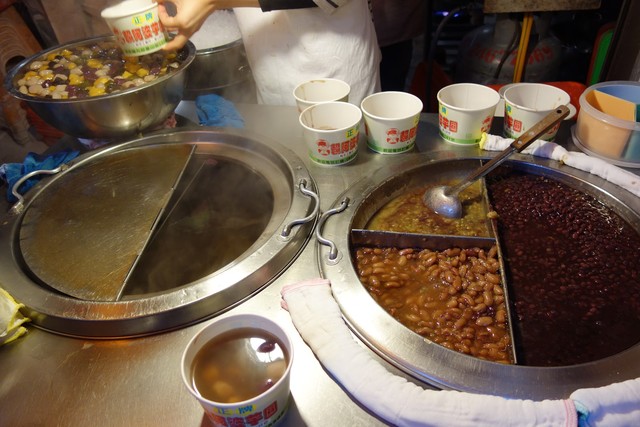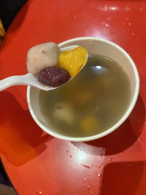 九分名物、紫いもとサツマイモのお汁粉芋圓(イーユァン)。