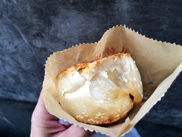 熱々の「胡椒餅」をハフハフいいながら頬張る。が、高さがあるので一口目は皮の部分のみ(笑)。