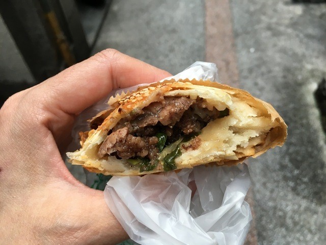 「胡椒餅」とは、胡椒や醤油などで味付けした豚挽き肉と大量の葱を