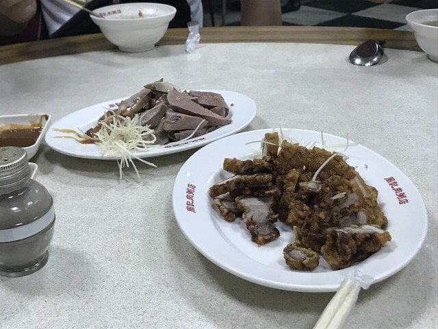肉粥、豚肉揚げ、鮫肉、豚の心臓等々。あと大腸?かな。