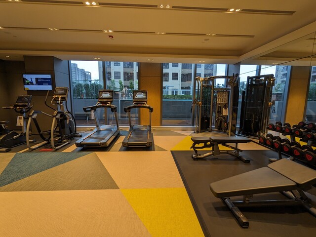 フィットネスセンターは全278室というサイズ感としてはかなりしっかりとしています。雨が降っていたので外には出ませんでしたが、屋外プールも用意されており、1泊1万円台のホテルとしては相当に気前が良いと言えるでしょう。