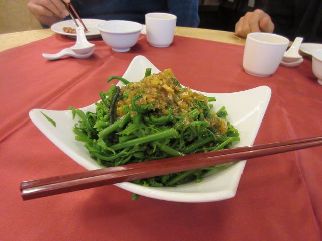 前菜は数品の中から二品選びました、最初はわらびの炒め物、日本のわらびよりプチプチとした食感のわらびでした。
