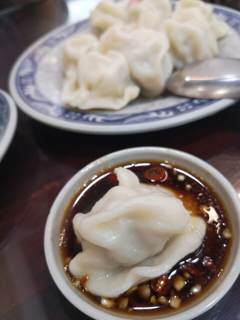 晩ご飯は駅からほど近い路地にある「豪季水餃専売店」へ。水餃子が絶品だという妻の勧めです。