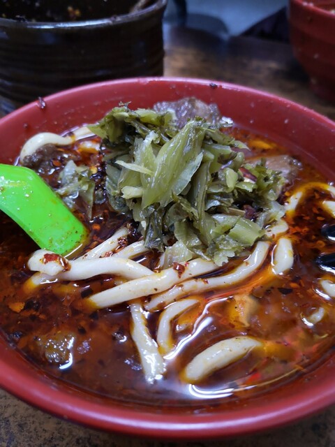 「激辛の牛肉麺が美味しいんだよ。麺がうどんみたいに太くて」