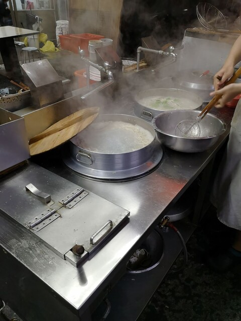オープンな造りの、半屋台のような食堂は、軒先で麺を茹でています。その奥では、様々な部位の肉が、料理の種類や客の注文によって切り分けられ、麺のトッピングに使われる仕組み。