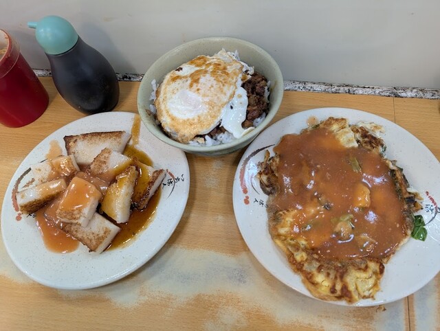 大根餅・魯肉飯・蚵仔煎(牡蠣オムレツ)を注文しました。全て普通に美味しかったのですが、魯肉飯が最も美味しかったです。少々硬めでしっかりと味の染み込んだ肉がご飯にとても合いました。トッピングの玉子は煮卵...