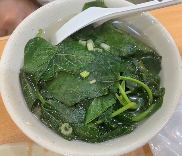 一緒に頼んだ、青菜の炒め物/スープも、ハム?のおかげもあってか、良い塩加...