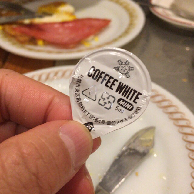 コーヒーのミルクは日本製雪印のポーションが2個。何となく懐かしい味になる。