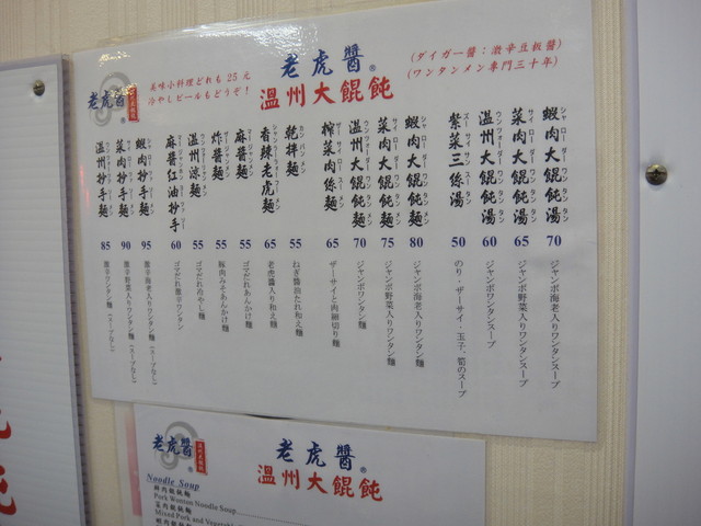 メニューはワンタン麺とワンタンスープを中心に汁なし麺もありますが、