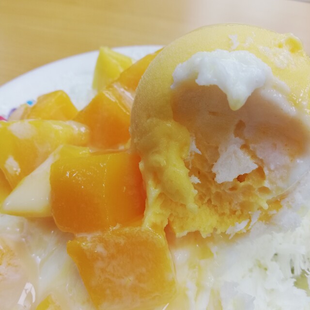 注文したのは「マンゴーかき氷(マンゴー+アイスクリーム+ミルク雪花氷)」です。