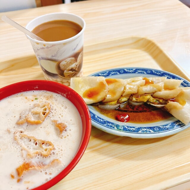 朝から大人気です。私の狙いは「鹹豆漿」。