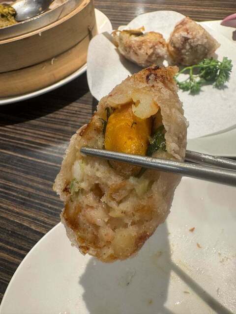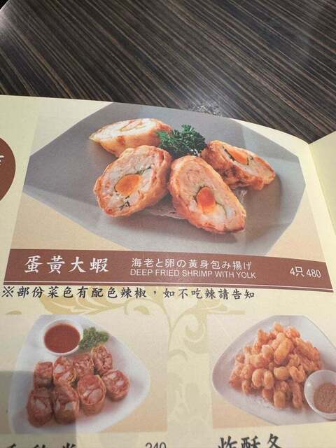 海老と卵の黄身包み揚げ、480NTD+税。
