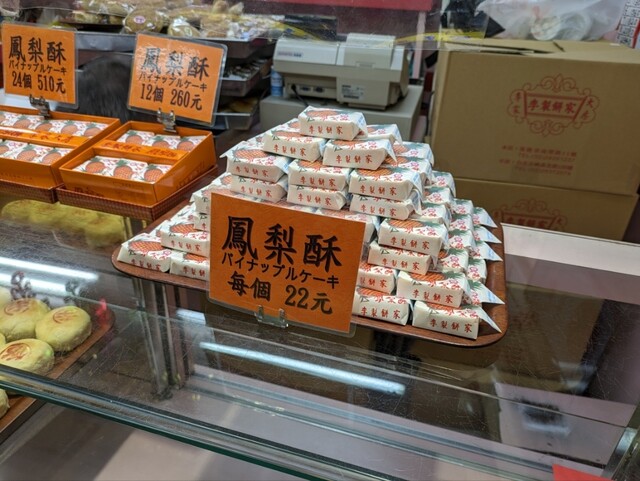 ネットで紹介されていたお手頃なパイナップルケーキ販売店。1個から購入することができ、100円程度なので軽く食べる用にピッタリのお土産です♪