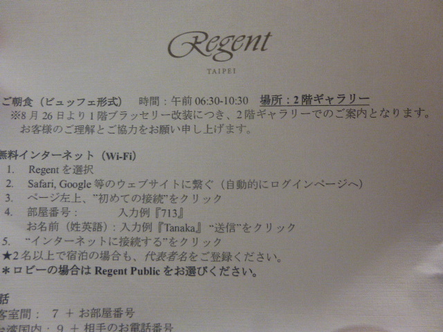 今回の宿泊は「リージェント台北」でした。お部屋や全体の雰囲気についてはすでにご紹介したので、