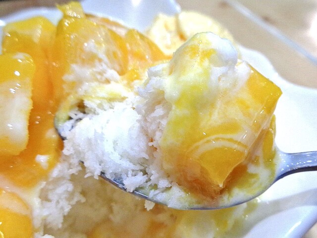 軽いシャリ感のある雪花冰や,マンゴーアイス,ミルクプリンは,マンゴーと好相性でした.全体をザックリ混ぜて食べると,いっそう旨いですね.