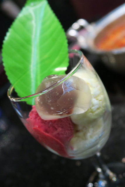 タレは、10種類の薬味、10種類の町も量や油を自由に混ぜて作る。味の可能性は無限だ。欲張りすぎてあれこれ入れると、味がわからなくなる。私はシンプルに、醤油、酢、ごま油、ニンニク、パクチー、ネギなどがお勧めだ。飲み物は、赤ワイン、スパークリングワイン、台湾ビール、ソフトドリンクが飲み放題で、デザートもフルーツ、や豊富なアイスクリームなどから選ぶことができる。ここのアイスクリームはなんとハーゲンダッツだ。