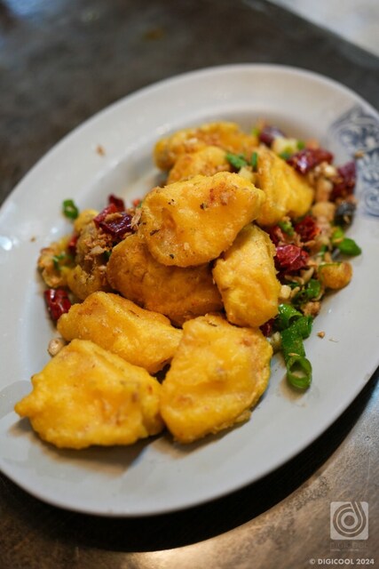 最後はエリンギのフリッターを激辛の唐辛子や花椒で和えたもの。最後なのに辛すぎた〜!汗が止まらない(笑