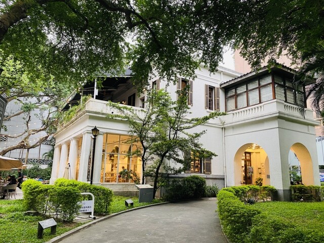 中山北路沿いに見つけることができる瀟洒な建物のカフェは旧アメリカ大使公邸だったとか。白亜の建物に灯りが灯って、まるで映画のワンシーンのような佇まいを見せています。