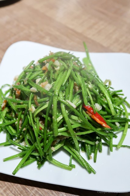 気になって注文した睡蓮菜の炒め物。歯ごたえとXO醤の旨味が抜群に辛ウマでして・・・飲まないつもりだったビールを注文。