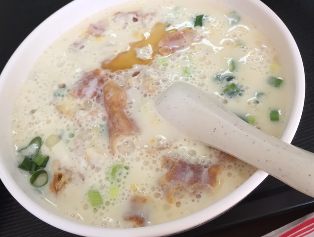 豆乳のスープに、卵、揚げパン、切り干し大根、ネギ等を混ぜて、お酢や胡麻油、はたまた砂糖などで調味された、台湾では最もポピュラーな朝食です。