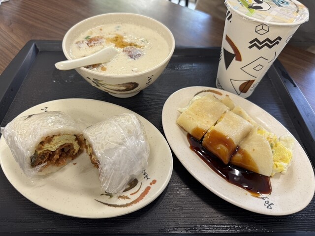 台湾の典型的な朝ごはん屋さんで食べられるメニューですが、普通に美味しいです。どこもそうですが、味は薄めで自分で調味料を足す感じです。