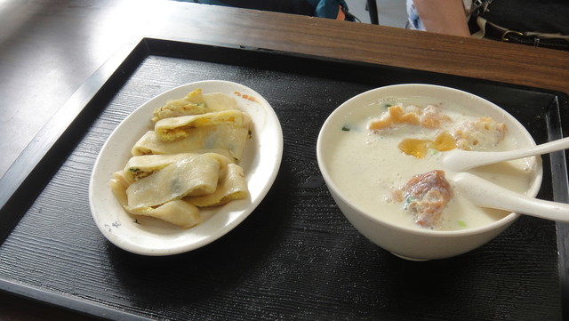 シェントウジャン(鹹豆漿)は、台湾で人気の朝ごはん。で、いちばんのお店は朝5時で1時間待ちというコスパ悪すぎで、こちらに行きましたが、けっこう良い感じです。