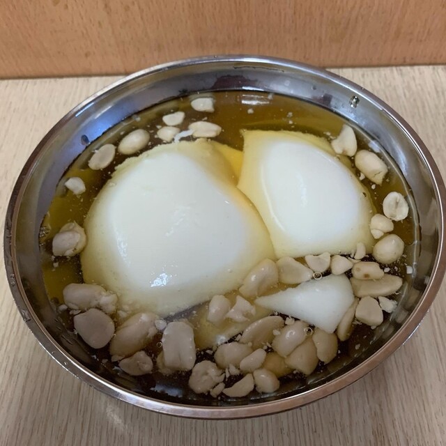 トッピングはピーナッツのみ。シンプルな豆花で、みずみずしくておいしかったです。ピーナッツは甘さ控えめで香ばしく、柔らかめ。黒糖シロップは甘め。シンプル。