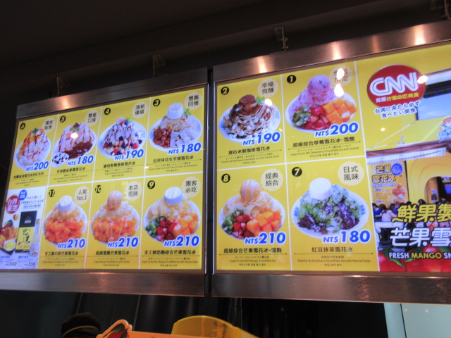 メニューはカウンターの上に表示してあったんでこの中から私はお勧めと書いてあったスーパーソルベとマンゴー雪花氷、もう2人は人気NO1と書いてあったマンゴーと手作りパンナコッタ雪花氷を注文してみました。