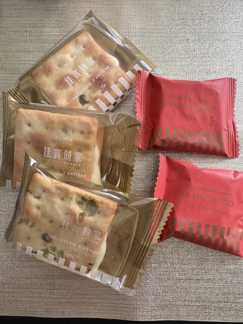 九分で「jia vin bakery」さんで色々なフレーバーを試食して、珈琲味とネギ味のビスケットを購入しました。