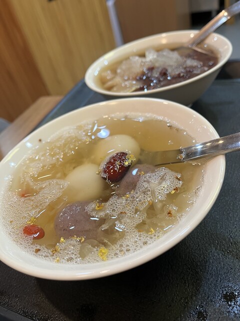 豆花と湯圓(タンユェン)のピーナッツ餡と胡麻餡を一つずつ