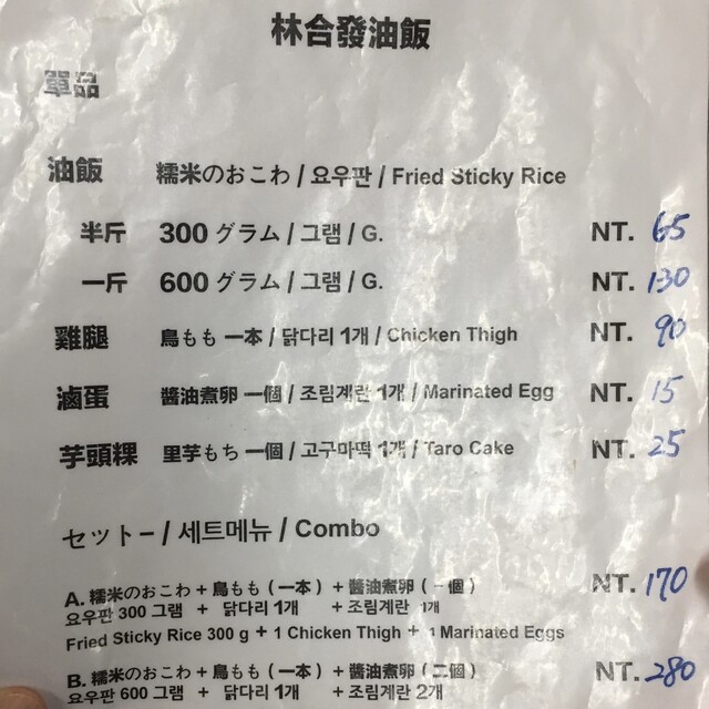 油飯 1台斤(600g)で100元(2019年現在350円)