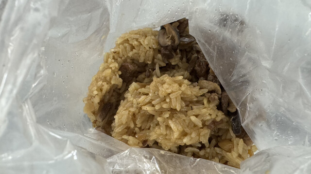 もちもちおこわ、油飯(ヨウファン)の、折り詰めは超大盛り、毎朝大人気!