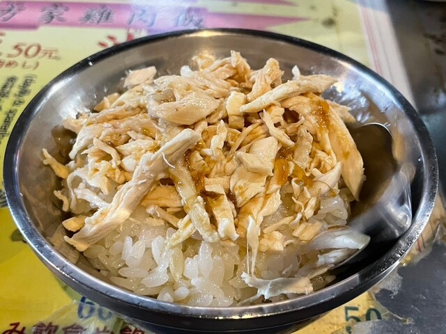 台北夜市に行ったら是非食べて頂きたい屋台です。私達は鶏肉飯(ジーロウ飯)とルーロウ飯を注文しました。ジーロウ飯40元とルーロウ飯50元とコスパ最強です!ジーロウ飯はシンプルながらタレとマッチしていて、...