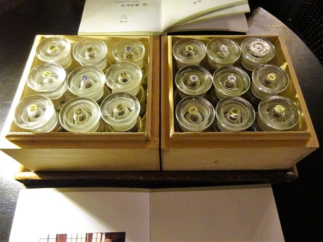 スタッフが水と一緒に運んできたのは、メニューと茶葉のサンプル(ガラス瓶)を入れた箱。