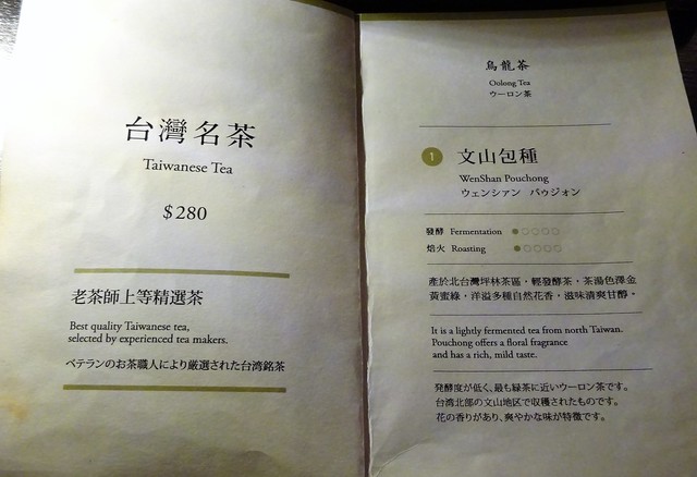 メニューは18種類のお茶(NT$280)のみ。