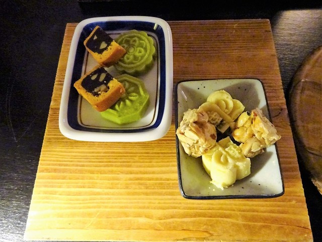 彩りが良く盛り付けた、サービスのお茶菓子は全部で9種類。