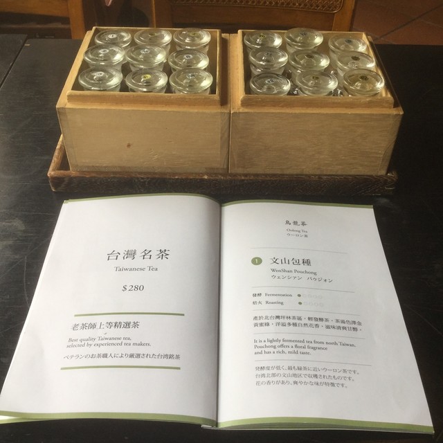 茶菓子がついて1種類280元統一で、日本茶もある。