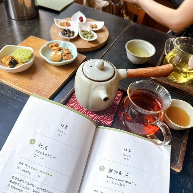 席に着くなり日本語が付記されたメニューと聞香瓶(におい瓶)が提供されるので、11種類の台湾茶と8種類の日本茶を含む西洋...