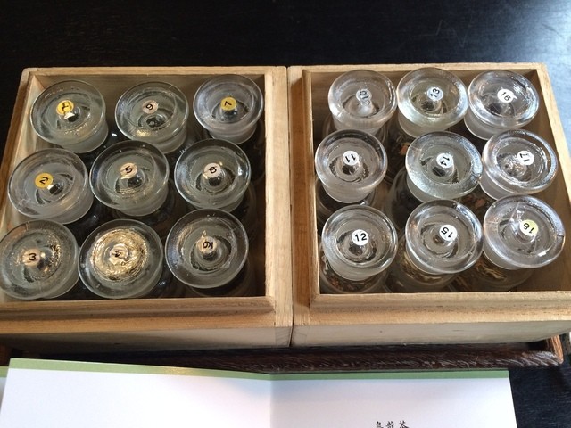 最初はお茶のサンプルの小瓶をテーブルに持って来てもらい、匂いを嗅いで...