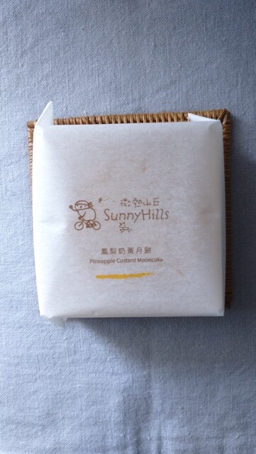 いただいたものを半分に。台湾の初夏のパイナップルケーキの心地好い酸味が美味しい。